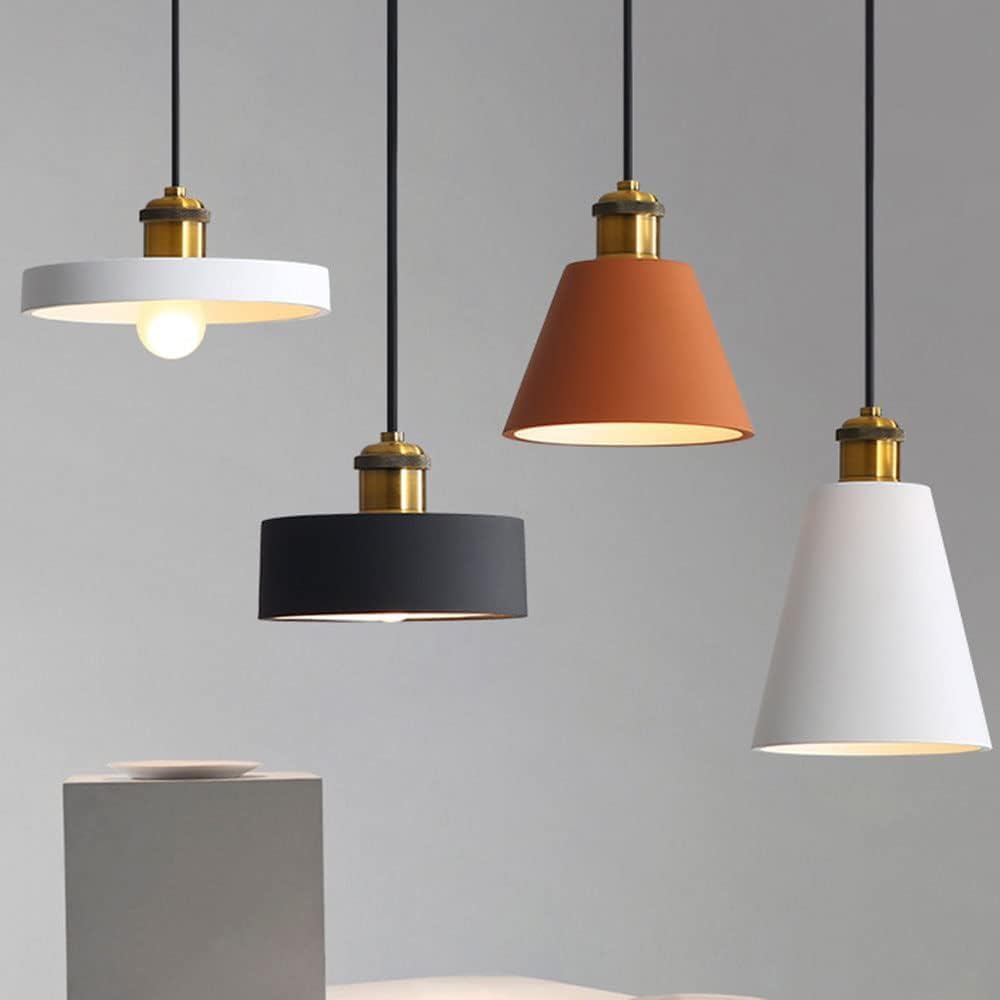 Type: Ceiling Pendant Light style: modernProduct color:Orange,Black,White,GrayProduct material: metalProduct Size :Product 1: 16cm/6.3in*23cm/9inProduct 2: 16cm/6.3in*16cm/6.3in Product 3: 16cm/6.3in*11.5cm/4.5inProduct 4: 20cm/7.8in*8.5cm/3.3inHanging line length: 78.8in (adjustable)Top disk size: The default is 10 cm /3.9 inches (Canadian diameter is 12 cm / 4.7 inches).Power: 1W-40WVoltage: 110-Number of light sources: 1Socket type: E27 (without light source)With or without bulb: noBulb Type: LED, , CFLIrradiation area: 10-15 square metersApplication: Indoor lighting/kitchen/restaurant/bedroom/cafe/bar/club lighting decoration