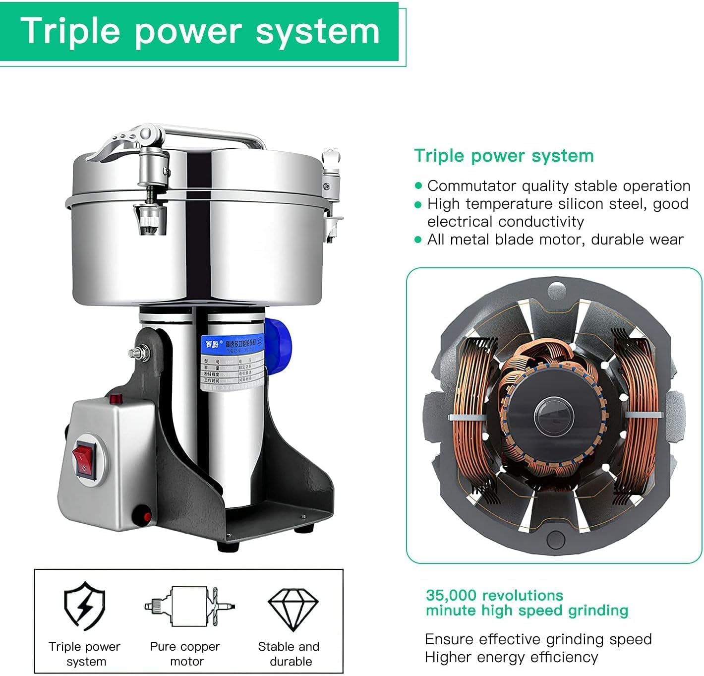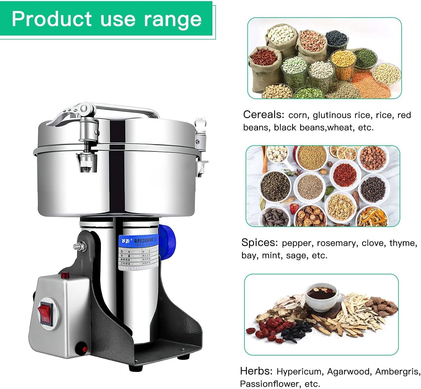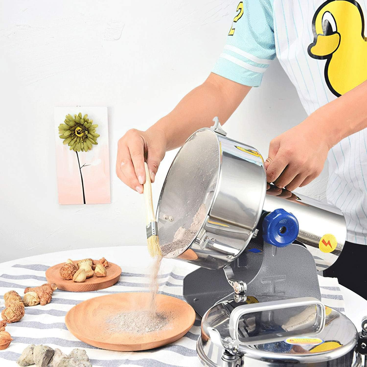 Specification: Power supply: 220V 50Hz Working time: 0-5 minutes Interval time: 5-10 minutes 600g: Capacity: 600g Rated power: 1400W Load power: 3000W Speed: 30000r/min Size: 36*16.3*22.8cm Caliber: Φ12.8cm Net weight 4.5 kg 800g: Rated power: 1400W Maximum load power: 3000W Speed: 34000r/min Caliber: 15.5cm Size: 36*17*22.8cm Net weight 4.2 kg 1000g: Capacity: 1000g Rated power: 1600W Load power: 3200W Motor speed: 35000r/min Crushing degree: 70-300 mesh Size: 36*13.5*18.5cm Caliber: Φ21cm Gross weight: 6.9kg 2000g: Capacity: 2000g Rated power: 1800W Maximum load power: 4000W Speed: 37000r/min Size: 36*13.5*18.5cm Caliber: Φ20.5cm Net weight 6.9 kg 2500g: Rated power: 1800w Maximum load power: 4500W Speed: 39000r/min Size: 37*13.5*18.5cm Caliber: 21cm Net weight 7.1 kg 3500g: Capacity: 3500 grams Rated power: 2000W Maximum load power: 4500W Speed: 41000r/min Size: 37.5*13.5*18.5cm Caliber: Φ25.5cm Net weight: 9.7 kg 4500g: Capacity: 4500 grams Rated power: 2000W Maximum load power: 4500W Speed: 4300r/min Size: 37.5*13.5*18.5cm Caliber: Φ25.5cm Net weight 9.9 kg ☀Due to the light from the shooting angle, the color may have some deviations. Manual measurement of the size may have an error of 1-2cm, I hope to understand. Contact us: If you have any questions or needs, you can contact us at any time.