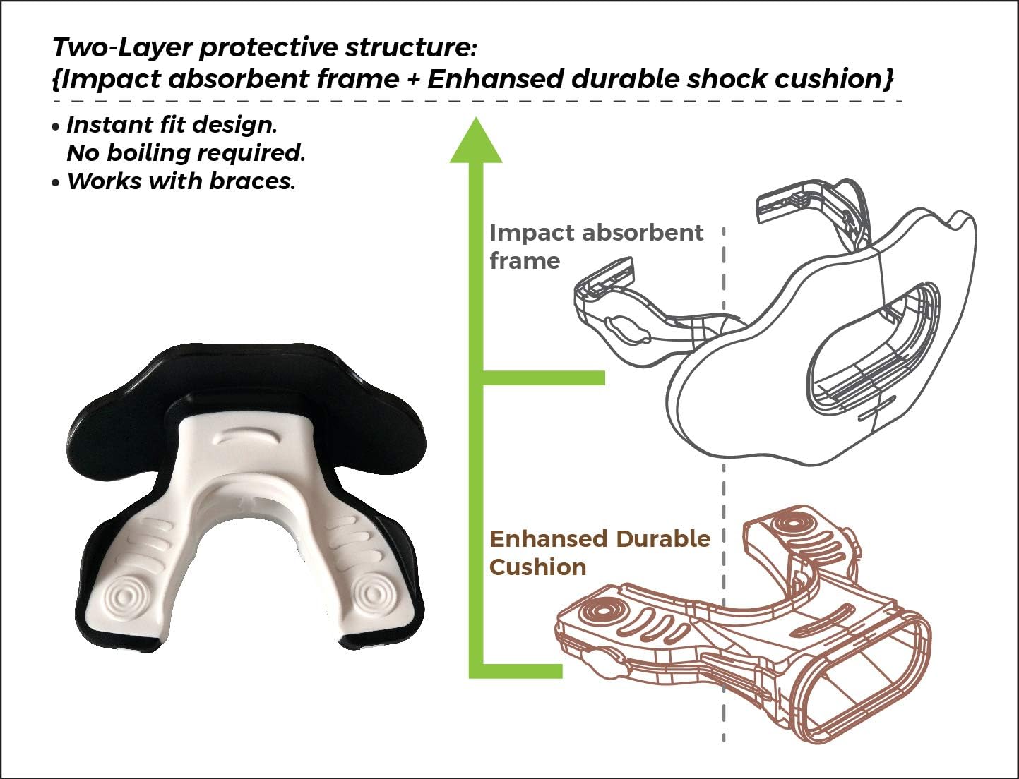 Our 3-in-1 Lip Guard is designed for football and other impact sports. It provides superb protection and extra comfort. One size fit most (Ages 8 through Adults). The package includes Lip Guard x 1, Storage Case x 1, Convertible Tether x 1, Handle x 1, Filter x 1.