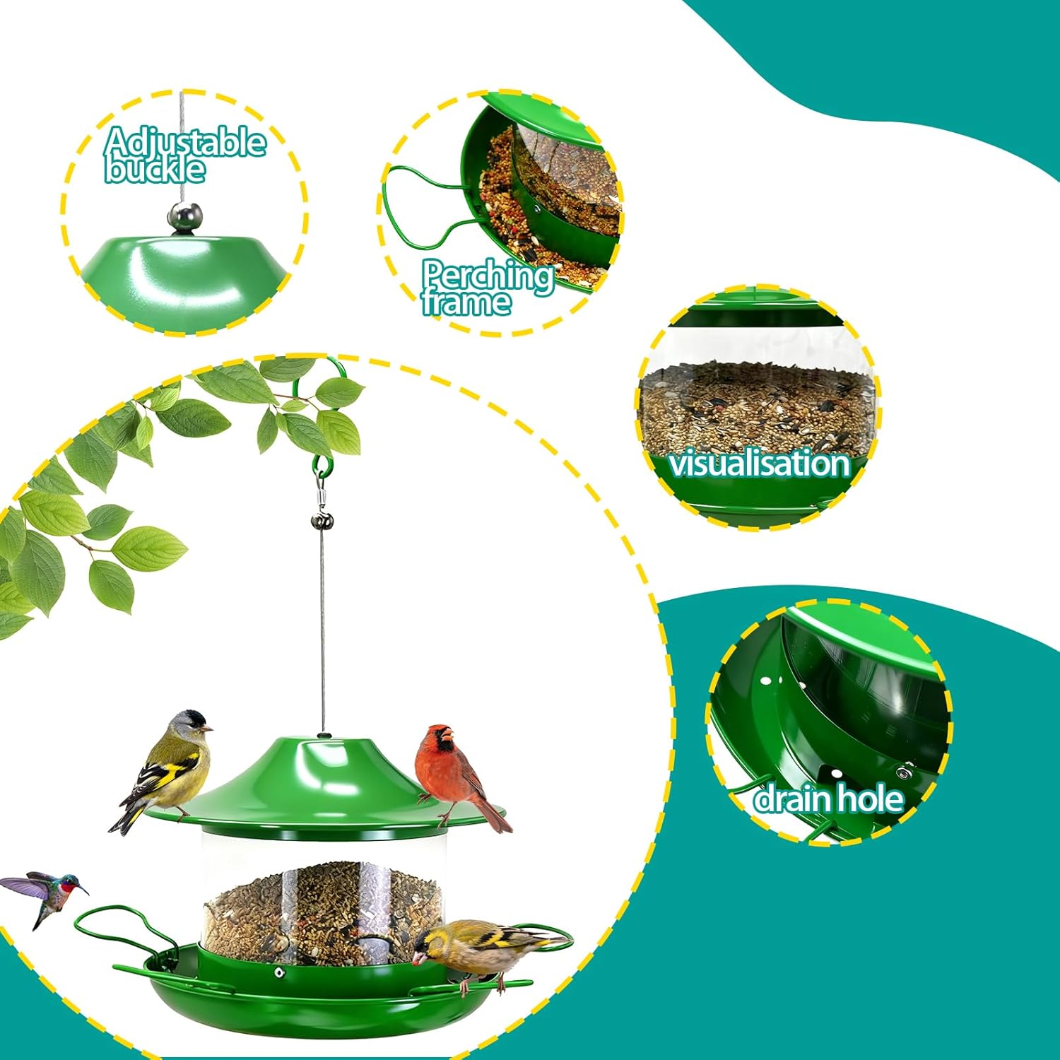| Additional Features | 360 Degree Perch, Easy-Refill Top, Sturdy and durable |