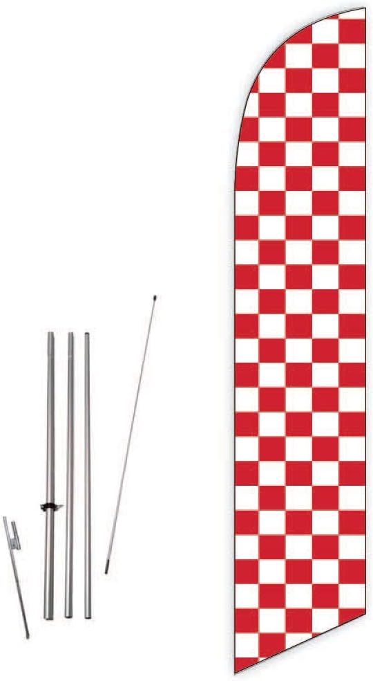 This is complete flag set with easy to install pole kit and hardware included. This stands 15ft tall when assembled with the pole kit and hardware. With the included fittings, it can be placed in grassy areas or soil. Options to install on walls, roofs, car tires, and a variety of other places are also available. With high quality printing and vibrant colors, it can grab attention of customers from a distance. This is the most effective and affordable way of drawing attention to your product, business or advertisement. We also offer custom designed flags and other outdoor advertisement materials in a variety of shapes and sizes.