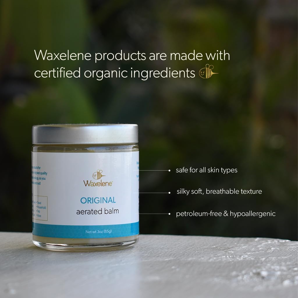 Waxelene Multi-Purpose Ointment Elevate your daily skincare routine with our international best selling Multi-Purpose Ointment—an organic aerated balm designed to hydrate, soothe, and nurture your skin from head to toe. Specially formulated to moisturize dry and sensitive skin while providing a breathable water-proof barrier that allows cuts, rashes and irritations to heal naturally. Safe for infants and children, this silky smooth ointment has won the hearts of thousands of people who swear by its transformative effects. People with eczema swear by this product, dry skin doesn't stand a chance. No more itching, redness, unsightly rashes and sleepless nights. Its unique patented texture is silky smooth and makes it more spreadable and breathable compared to solid balms. It has 100+ uses such as face moisturizer, hand lotion, make-up, babies, lip moisturizer, eczema, psoriasis, chapped lips, after-shave, anti-chafe, after-sun, night cream, massage, make-up remover, and more.